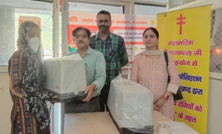 जिला चिकित्सालय में आयोजित कार्यक्रम में टीबी एसोसिएशन ऑफ उत्तराखंड के सहयोग से मुख्य चिकित्सा अधीक्षक डाॅ. प्रवीण कुमार, संस्था की सचिव पूनम किमोठी, डीटीओ डाॅ. कुणाल चौधरी के हाथों 10 क्षय रोगियों को पोषाहार किट वितरित किए गए, वहीं क्षय रोगियों की आजीविका संवर्द्धन के लिए महामहिम राज्यपाल की ओर से उपलब्ध कराई गई 02 सिलाई मशीन 02 क्षय रोगियों वितरित की गई।