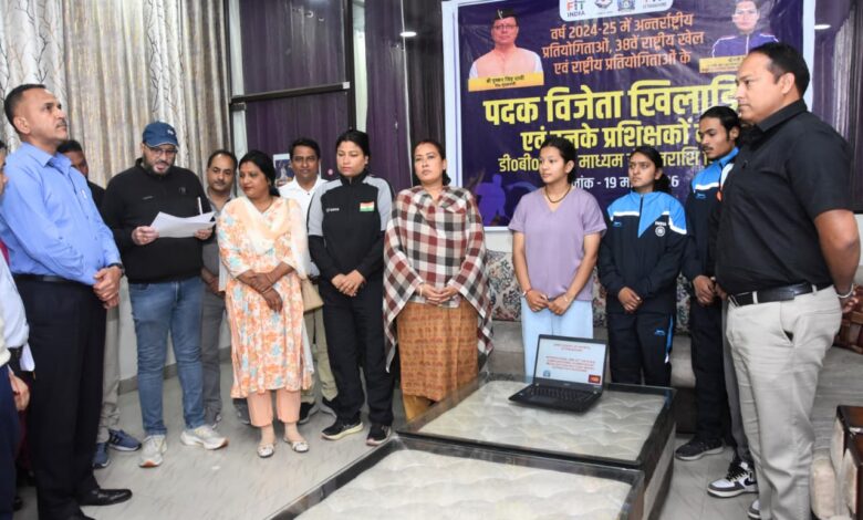देहरादून। विभिन्न राष्ट्रीय एवं अंतरराष्ट्रीय खेल स्पर्धाओं में पदक जीतने वाले प्रदेश के खिलाड़ियों और प्रशिक्षकों को 3 करोड़ से ज्यादा की इनामी धन राशि जारी की गई है। बृहस्पतिवार को यमुना कॉलोनी स्थित कैंप कार्यालय में खेल मंत्री रेखा आर्या ने यह धनराशि खिलाड़ियों के खातों में डीबीटी ट्रांसफर की। खेल मंत्री रेखा आर्या ने बताया कि इन खिलाड़ियों में 1 जुलाई 2024 से और 31 मार्च 2025 के बीच विभिन्न अंतरराष्ट्रीय प्रतियोगिताओं में पदक जीतने वाले खिलाड़ी शामिल हैं।